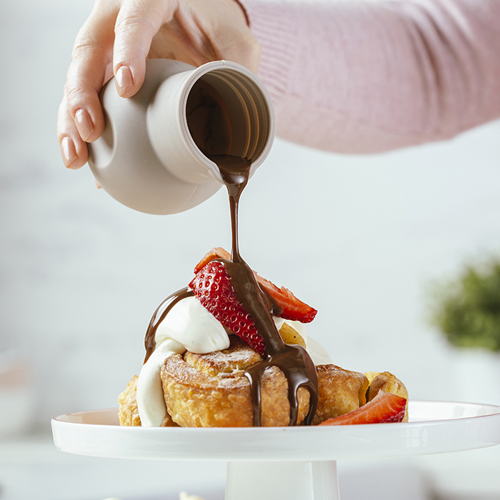 Κατασκευασμένο από εύκαμπτη σιλικόνη, κατάλληλη για επαφή με τρόφιμα, ανθεκτικό στη θερμοκρασία, μπορεί να τοποθετηθεί και στο ψυγείο, με αποσπώμενο καπάκι που αποτρέπει τις διαρροές και χείλος σερβιρίσματος του λιωμένου περιεχομένου. Σε καμπυλωτό σχεδιασμό για εύκολη χρήση και με θέσεις λαβής για ασφαλές και σταθερό κράτημα.