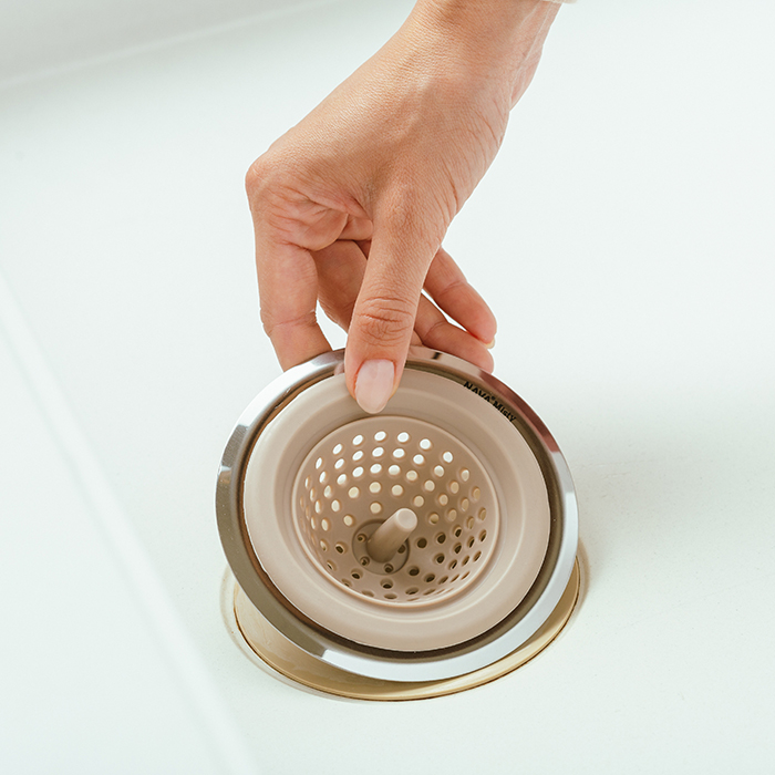 Σε κομψό και μοντέρνο σχέδιο, με χείλος κατασκευασμένο από ανοξείδωτο ατσάλι, για σταθερό κράτημα, και φίλτρο από μαλακό πλαστικό, ώστε να μη χαράσσεται ο νεροχύτης. Εύκολο καθάρισμα, απλά τραβήξτε την ακίδα στο εσωτερικό, για να αναστρέψετε το εύκαμπτο φίλτρο και να αδειάσετε εύκολα και χωρίς να λερωθείτε, τα υπολείμματα που έχουν συγκεντρωθεί.