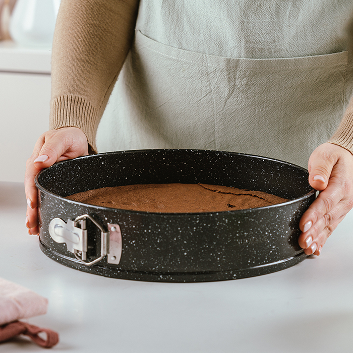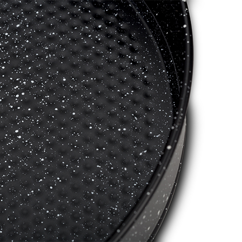 Η φόρμα είναι κατασκευασμένη από ατσάλι που εξασφαλίζει την ομοιόμορφη κατανομή της θερμότητας στο σκεύος για καλύτερα αποτελέσματα. Η αντικολλητική επίστρωση stone, σε συνδυασμό με τον αποσπώμενο μηχανισμό που διαθέτει, εξασφαλίζει την εύκολη αφαίρεση του κέικ, καθώς και τον εύκολο καθαρισμό του σκεύους μετά τη χρήση.