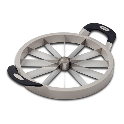 Ο σκελετός είναι κατασκευασμένος από πλαστικό υψηλής ποιότητας, ενώ οι λάμες είναι από ανοξείδωτο ατσάλι, κατάλληλο για επαφή με τρόφιμα. Οι εργονομικές, αντιολισθητικές soft-touch λαβές, εξασφαλίζουν ασφαλές, άνετο και σταθερό κράτημα. Εύκολο στη χρήση, το καθάρισμα και την αποθήκευση, καθώς μπορείτε απλά να το κρεμάσετε από τις λαβές. Κόβει άψογα οποιοδήποτε μέγεθος καρπουζιού και είναι ιδανικό ακόμη και για πεπόνι, ανανά, μελιτζάνες και άλλα φρούτα και λαχανικά μεγάλου μεγέθους.