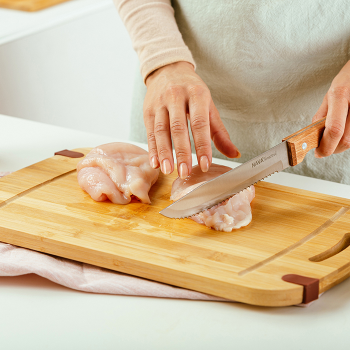 Χρησιμοποιήστε την ξύλινη επιφάνεια κοπής Terrestrial της NAVA για να ψιλοκόψετε μυρωδικά, να φιλετάρετε ή να τρυφεροποιήσετε κρέας, να τεμαχίσετε φρούτα ή λαχανικά, αλλά ακόμη και σαν πλατό σερβιρίσματος.