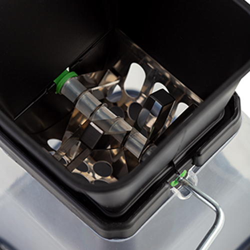 Κατασκευασμένος από πλαστικό υψηλής ποιότητας, με λεπίδες από ανοξείδωτο ατσάλι είναι κατάλληλος για επαφή με τα τρόφιμα.