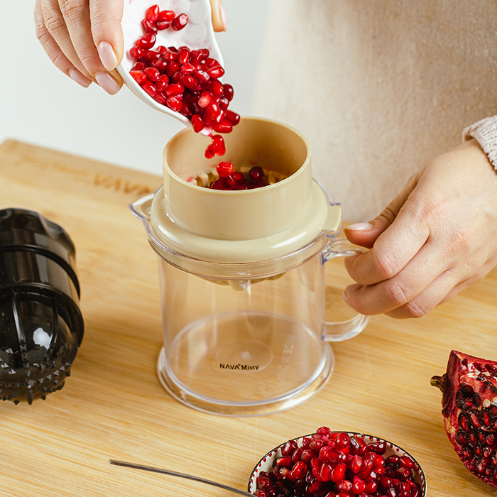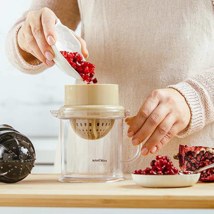 Δημιουργήστε φρέσκους χυμούς από φρούτα και λαχανικά και υιοθετήστε μια υγιεινή διατροφή με το πολυλειτουργικό αποχυμωτή χειρός Misty της NAVA. Στύψτε εύκολα και γρήγορα λεμόνια, λάιμς, πορτοκάλια, ρόδι, καρπούζι ή γκρέιπ φρουτ και απολαύστε τη φυσική τους γεύση.