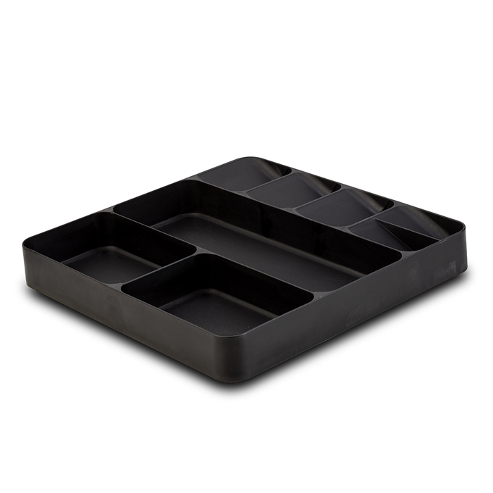 Είναι κατασκευασμένη από ανθεκτικό πλαστικό υψηλής ποιότητας, ενώ διαθέτει 3 επικαλυπτόμενα διαμερίσματα για τα μαχαιροπίρουνα και ακόμη 5 θήκες διαφόρων μεγεθών.