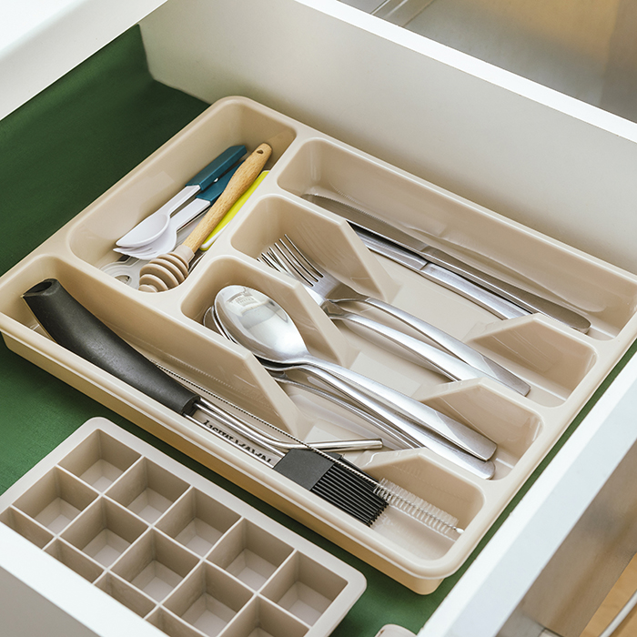 Διαθέτει 3 μεγάλες θήκες για κουτάλια, πιρούνια και μαχαίρια, 1 μεγαλύτερη θήκη για τα εργαλεία, και ακόμη 1 μικρότερη θήκη για κουταλάκια και πιρουνάκια.
